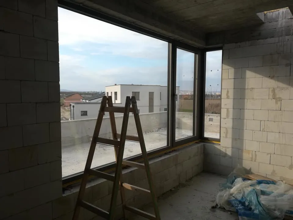 Montáž hliníkových okien, presklených dverí a zdvižno-posuvného hliníkového HST portálu s bezbariérovým prahom a kaleným sklom. Hlavné vchodové dvere sú vybavené biomerickým snímačom odtlačkov, 4-bodovým secury automatickým zamykaním, nerezovou kľučkou z interiéru, nerezovým valcovitým madlom z exteriéru, závesmi Dr.Hahn. Osadenie nadrozmerných skiel sme riešili pomocou zasklievacej techniky s prísavkou.
